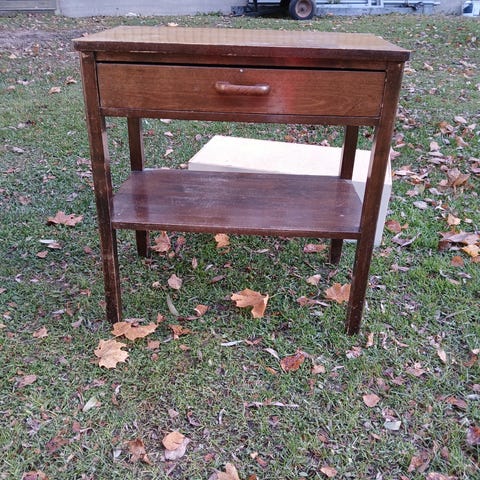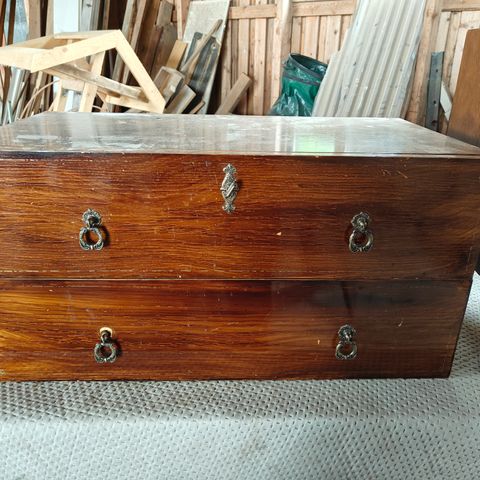 Maalattua kalustelevyä. Kunto on hyvä. Siisti sisältä. Pientä käytön jälkeä. Päällitasossa etuosan kaistale on hiukan kirkkaampi/kiiltävämpi. Pari mustaa pientä jälkeä.
