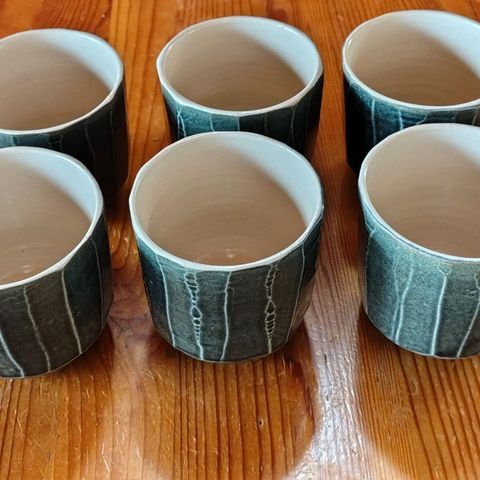 Nummi keramiikka astiastosarja, jossa on sinivalkoinen väritys. Made in Finland. 6 kpl kahvikuppeja, joissa yhdessä pieni lohkeama, näkyy viimeisessä kuvassa. Materiaalina keramiikka. Muut uudenveroisia. Sekä sokeriastia, myös uudenveroinen. Kupeissa NUMMI leima pohjassa. Nouto tai postitus.