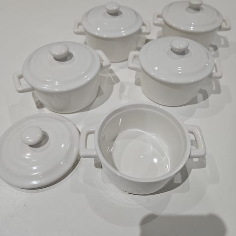 Suorakulmainen uunivuoka, arabian pyöreä uunivuoka, muffini ja kakkuvuoka, kananmunan keitin, obh nordic sauvasekoitin, veitsiä, juomalaseja ja pillejä, leipälautasia ja aterimia, kaksi syvää kulhoa, sekä muuta keittiö kamaa.