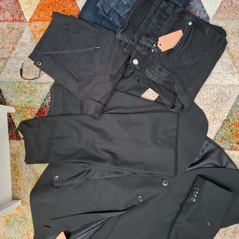 4x Andy by FrankDandy college housut S kokoa. 3x harmaa 1x mustat lahkeissa resorit. Isot taskut