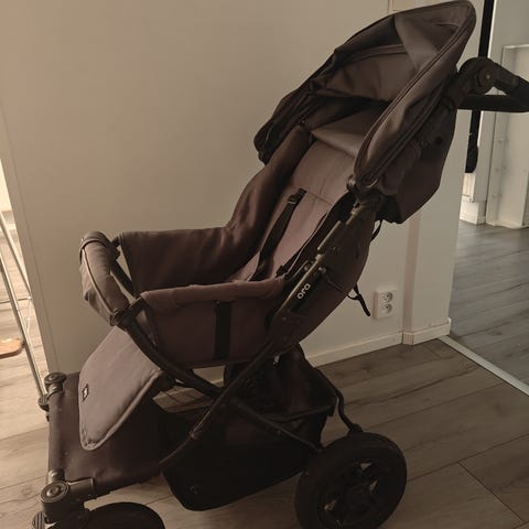 Ostettu alkuvuodesta 2024. Yhden lapsen istumat, aina sisällä säilytetty. Kankaat juuri pesty. Istuinosassa pieniä haaleita jälkiä (näkyy kuvissa), jotka hyvinkin voisi tahranpoistoaineella lähteä.