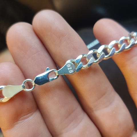Noin muutaman kuukauden käytössä ollut hopeaketju. Ja tuona aikana vain silloin tällöin kaulassa. Ketju on ostettu Kultajousesta.