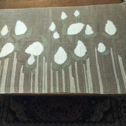 Käsin kudottu kuultokudos. Työn pohjamateriaali on pellavaa, ja se soveltuu esim seinälle tai ikkunaan. Korkeus 63 cm ja leveys 58 cm. Kunto on uuden veroinen ja taitavasti kudottu. Ei ole ollut käytössä. Hinta 15 € ja voin myös lähettää.