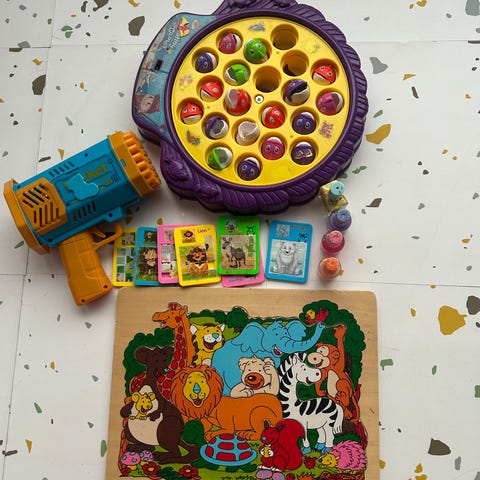 Prinsessateemainen pelipaketti, jossa 4 erilaista peliä: 2xpalapeli, muistipeli ja domino