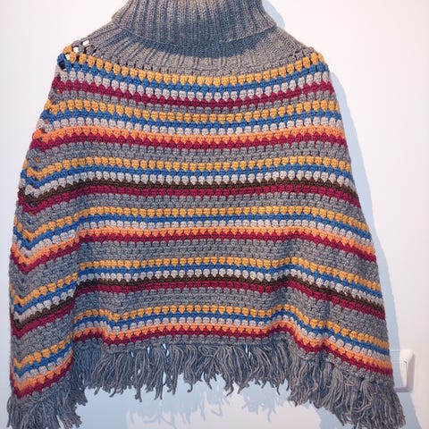 Myydään käyttämätön, itse tehty harmaa poncho.