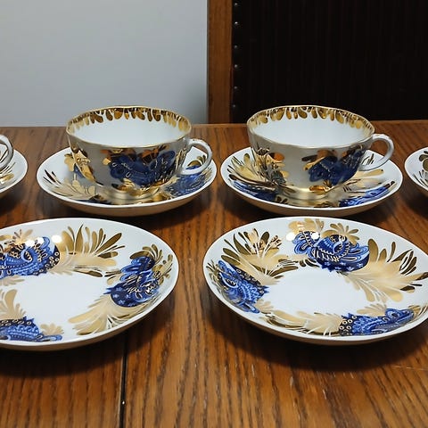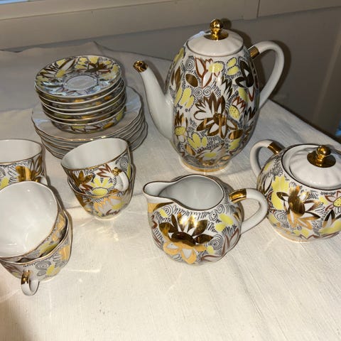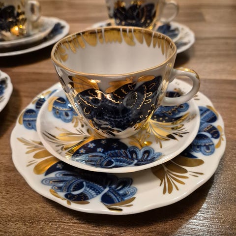 6 kpl Lomonosov Golden Garden kahvikupit,asetit ja kakkulautaset