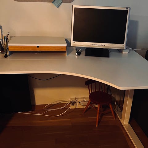 Hyväkuntoinen ja siisti sähköinen työpöytä.