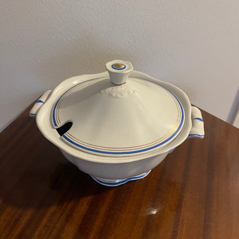 Pohjassa hiushalkeamia, pohjan reunassa pieni lohkeama, kannun yläreunan sisäpuolella pieni halkeama. Eivät haittaa käyttöä.