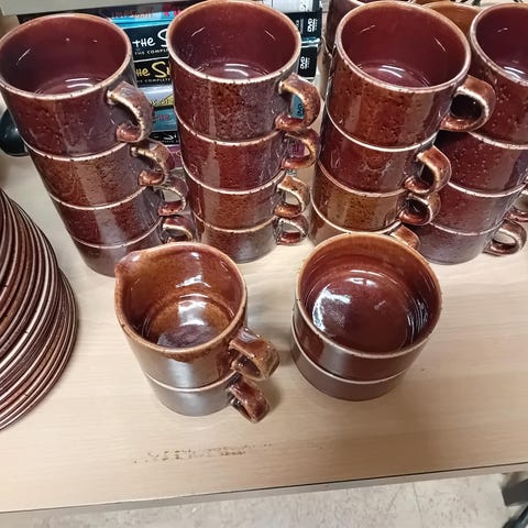 Hakusanat: astiat, lautaset, arabian, design kuppi muki kupit lautanen astiasto kahviastiasto tassi asetti lautaset kupit mukit, Paketoitava, Valmistaja, keittiötarvikkeet, arabia, keramiikka, ruskea