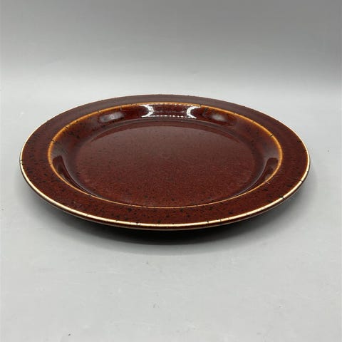 Arabia valmistamat Krouvi lautaset design Göran Bäck, ruskean sävyiset ja yksinkertaisella muotoilulla. Lautaset ovat halkaisijaltaan noin 22 cm.