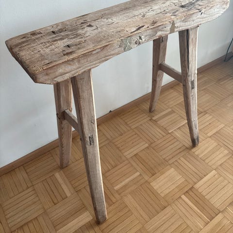 Tämä penkki edustaa vintage-tyyliä, joka on suosittu sisustuselementti. Sen yksinkertainen muotoilu ja käytännöllisyys tekevät siitä monikäyttöisen huonekalun.