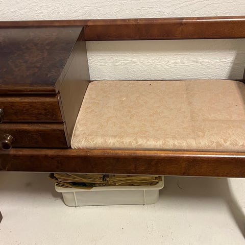 Hakusanat: puu, vintage, istuin, huonekalu, laatikot, säilytyspenkki, vintage huonekalut