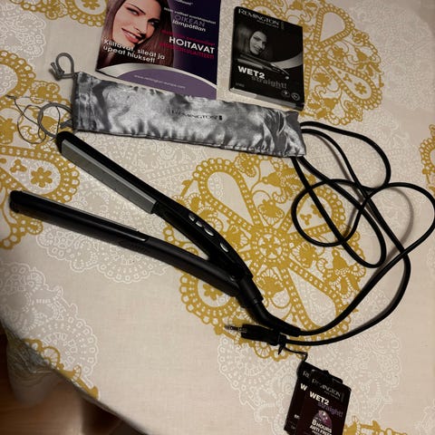 Myydään muutaman kerran käytetty ja kaapin perälle unohdettu Remington suoristusrauta. Säädettävä lämpötila 150- 230. Sisältää silikonisuojan. Ostettu Normalista pari vuotta sitten.