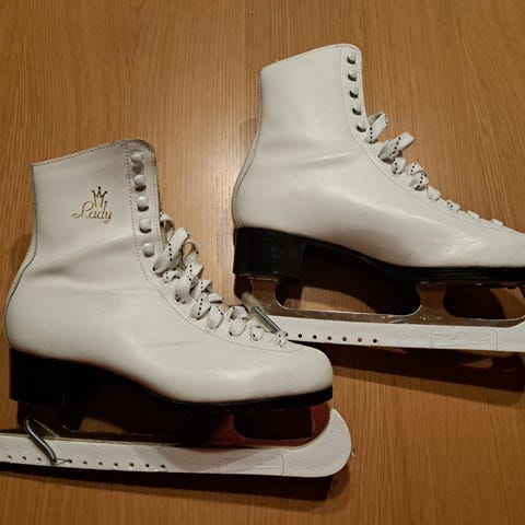 Lady luistimet, käytön jälkiä löytyy ja kaipaavat teroitusta. Koko vastaa 39.