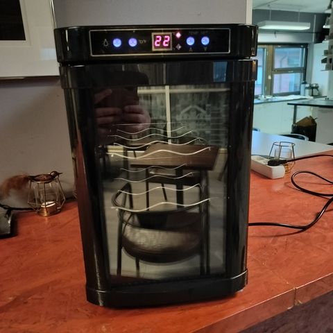 Kiire! Iäkäs mutta täysin toimiva korkea viinikaappi.