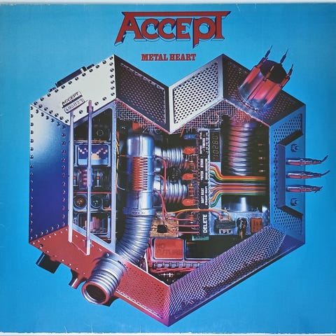 Metal Church The Dark LP-levy. Levyn kansi ja sisältö näkyvissä, mukana kuvat bändistä. Levy on fyysinen äänilevy, joka sisältää albumin nimeltä The Dark.