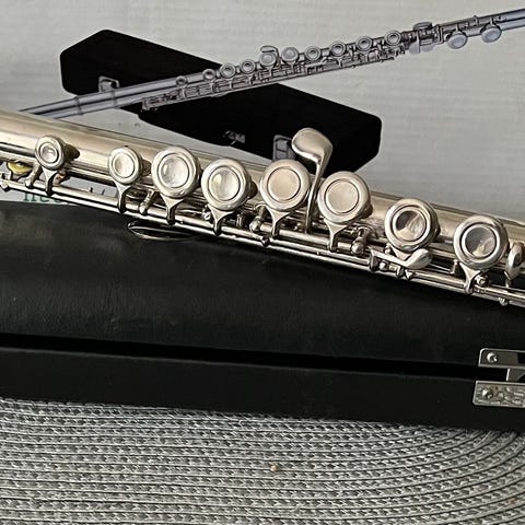 Vanha, laadukas ja siistikuntoinen poikkihuilu. Aikoinaan käytössä musiikkiopisto-opiskelijan harjoitussoitin, ollut pitkään soittamatta. Mukana säilytyskotelo ja puhdistuspuikko.