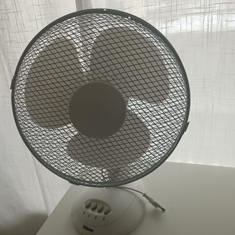 Ideale pöytätuuletin. Kromattu, kolmenopeuksinen ja pystysäädettävä.