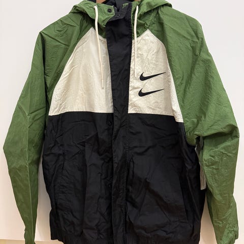 Nike miesten urheilutakki, koko S. Takki on väriltään musta ja valkoinen, valmistettu kevyestä materiaalista. Takissa on vetoketjullinen etuosa, hupullinen malli ja verkkovuori. Soveltuu monipuoliseen urheilukäyttöön.