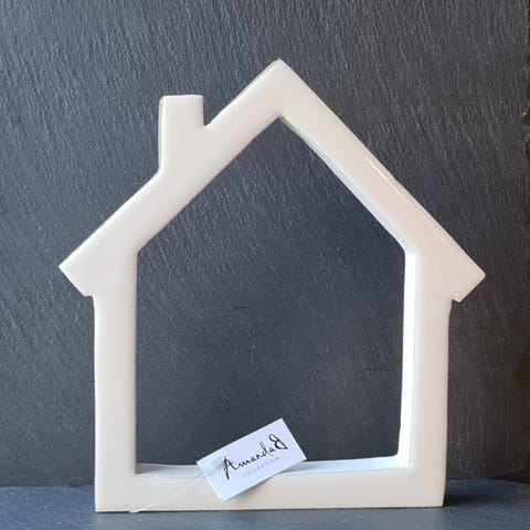 Myytävänä Amanda b'n pieni mangopuinen talo/koriste pöydälle, hyllyyn tai vaikka ikkunan väliin. Yhdellä puolella valkoinen emalipinta