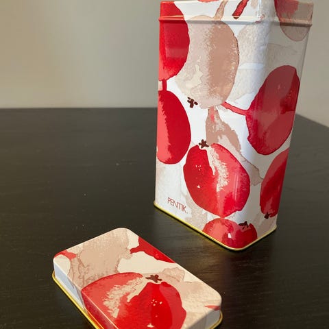 Pentik säilytyspurkki kannellinen. Korkeus 14cm ilman korkkia. Kunto hyvä ja korkki ehjä.