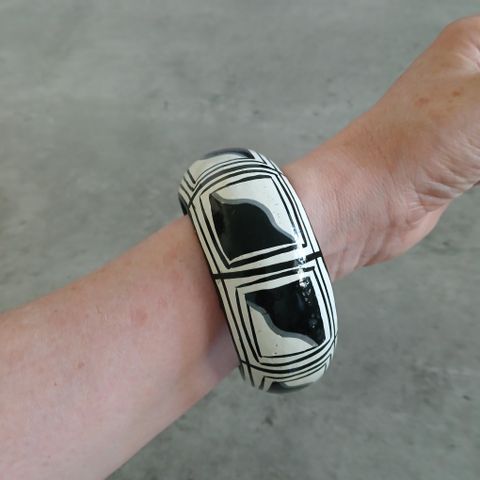 Kaunis ruskea rannerengas, joka on tehty pienistä ruskeista ilmeisesti puuhelmistä ja teräslangasta. 5-krs kierre. Halkaisija sisäpuolella 5,5 cm. Ehjä ja siisti. Postitus tai nouto.