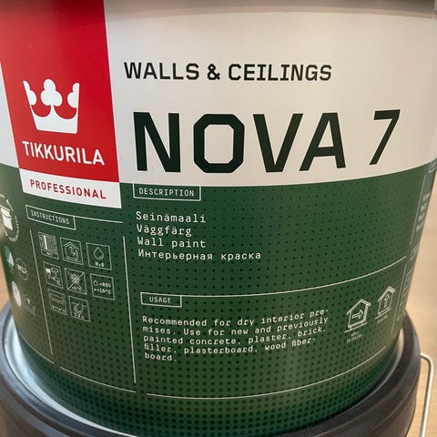 Tikkurila Nova 7 sisämaali, 10 litraa, valkoinen väri. Soveltuu seinien ja kattojen maalaukseen sisätiloissa.