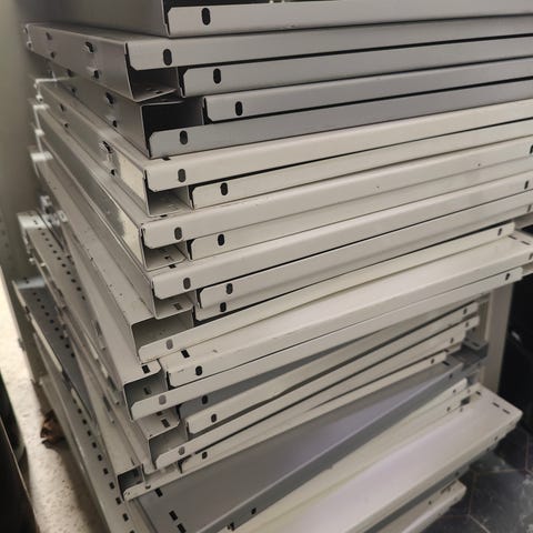 Metallinen ritilähylly, joka soveltuu erilaisiin säilytystarpeisiin. Hyllyssä on metallinen rakenne ja se on suunniteltu kestäväksi ja monikäyttöiseksi.