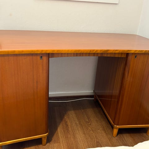 Vanhan ajan työpöytä. Hieno kaluste. Kannessa vähän korjattavaa mutta muuten ihan hyvässä, ajan mukaisessa kunnossa.