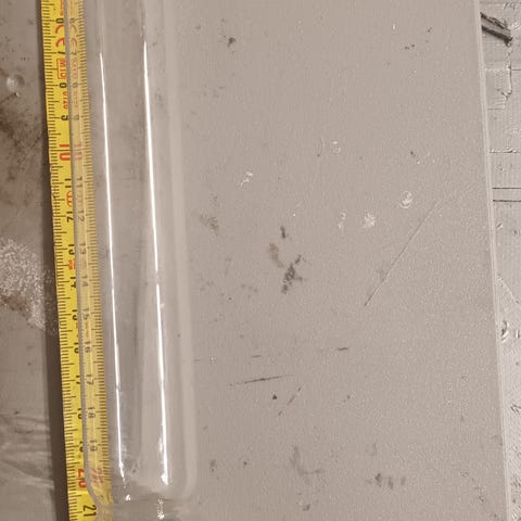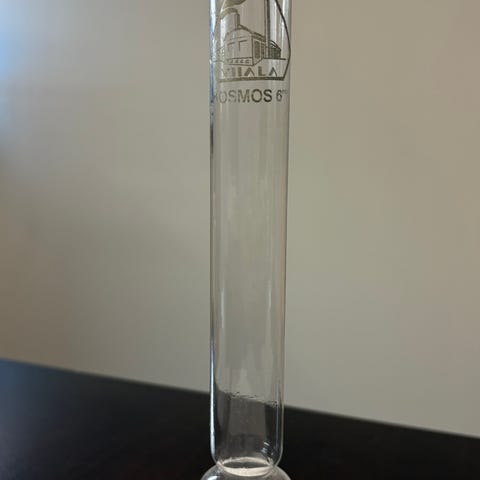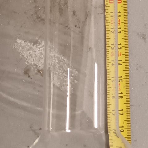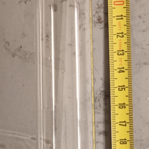 Liekkilasi öljylamppuun. Kork. 260mm, alap. Sisähalk. 80mm, ulkohalk.84mm.