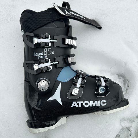 Atomic Race jr laskettelumonot, väri punainen ja valkoinen, koko 37-38. Neljä metallista solkea ja tukeva rakenne. Ainoa mitta minkä löysin monoista oli kyljessä 307mm. Viime vuosina satunnaisessa käytössä. Nouto Kuljusta.