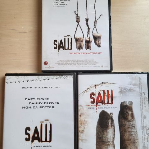 Myynnissä 3 kpl Saw elokuvia