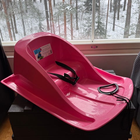 Hakusanat: pulkka vauvapulkka pinkki vaaleanpunainen talviurheilu talvileikit lapset lapselle lapsi lasten stiga liukuri kelkka pulkkailu laskiainen talvi lumileikki