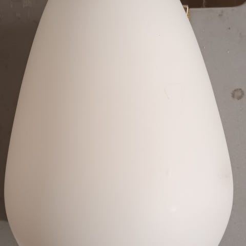 Pisaranmallinen kirkas lampun lasi. Kork. 250mm, alap.halk.130mm, kapein kohta 58mm.