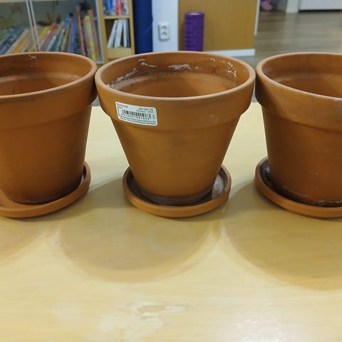Käytettyjä savialuslautasia, ehjiä mutta multasia. Imuroin irtomultaa, mutta en ole pessyt.