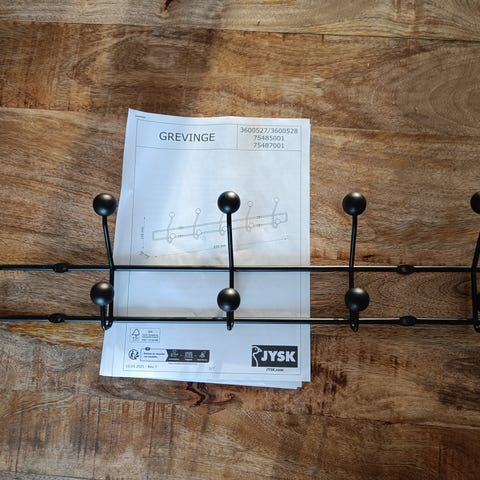 naulakko, jossa metalliset tangot ja puiset sivukappaleet. Naulakossa on koukut vaatteiden tai muiden esineiden ripustamiseen. Sekä hatuille hylly myydään tarjouksien perusteella