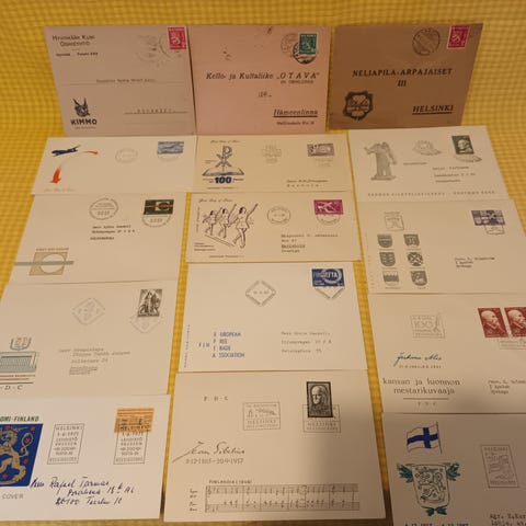 FDC kuoria Aleksis Kivi, Oskar Merikanto ym sekä muutama vanha firmakuori.