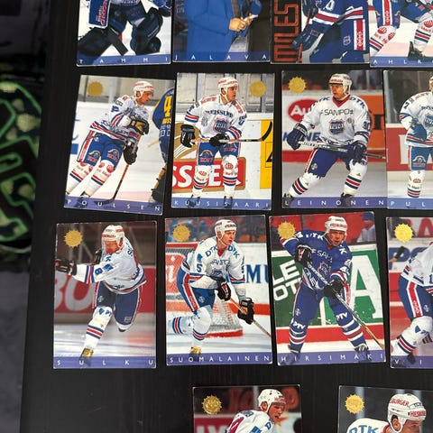 Kotoisesta (SM)-Liigasta kortteja eri vuosilta. Mukana löytyy 90-lukua, 2000-lukua ja vähän tuoreempaakin. Kunto hyvästä erinomaiseen.