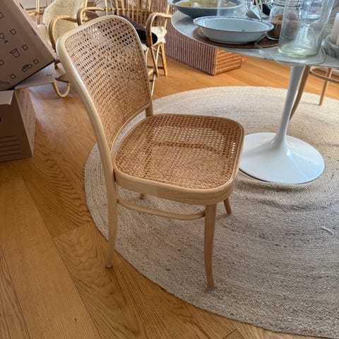 Rottinkiset Faurholt tuolit 3kpl. Maalipinta ja rottinkiset istuinosat ovat hyvässä kunnossa, pieniä käytön jälkiä on näkyvissä.