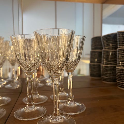 Seitsemän erilaista ehjää käyttämätöntä snapsilasia