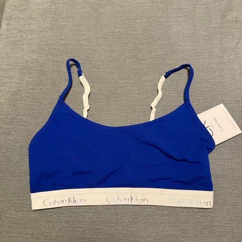 Calvin Klein mustat naisten rintaliivit, valmistettu puuvillasta. Koko S. Rintaliivit ovat yksiväriset ja niissä on valkoinen elastinen nauha, jossa Calvin Klein -logo.