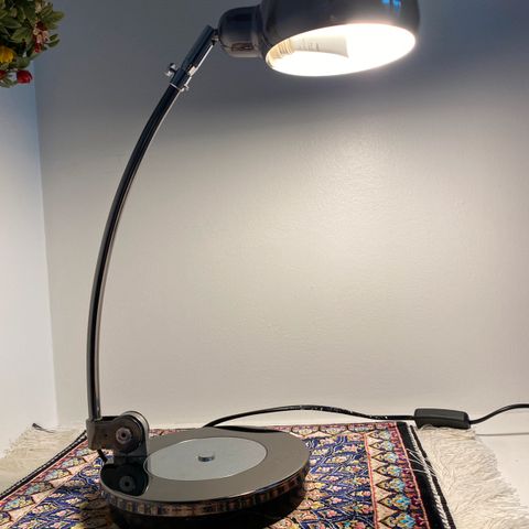 Jalka ja varjostin kromin väristä metallia. Hapsujen