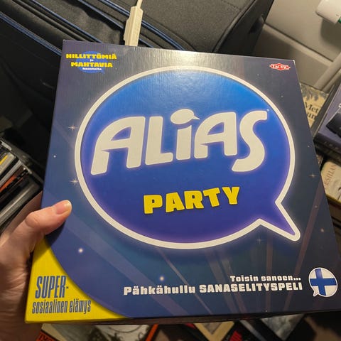 Myydän itsellä viime aikoina vähälle käytölle jäänyt Alias. Kaikki pelin komponentit näyttävät olevan tallella ja hyvässä kunnossa.