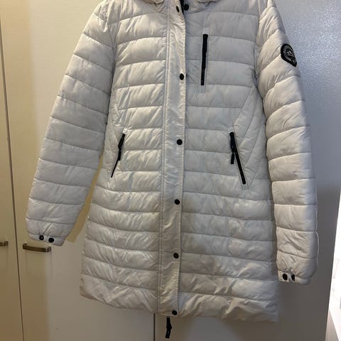 Superdry Fuji Series talvitakki naisille, koko S. Takki on musta ja valmistettu polyesteristä. Malli on pitkä ja siinä on huppu, jossa on irroitettava tekoturkis.Koko S . Takkia on pidetty vain kerran. Kainalomitta 50x50. Ovh. 160 eur. Hinta 60 eur.