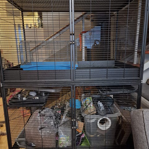 Häkin takaosassa ja oven viereisessä kalterissa hieman ruostetta. Pohja siistissä kunnossa ja helppo pitää puhtaana.