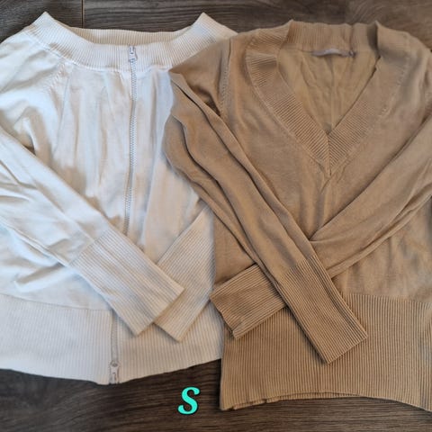 Hyväkuntoinen naisten ruskea neule oranssilla kauluksella. Koko: S.
