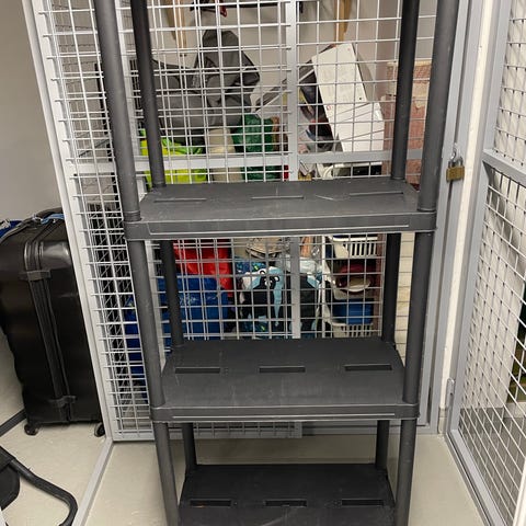Myydään varastohylly. Tällä saa yhden tason lisää varastoon, jonka päälle ja alle voi laittaa tavaroita.