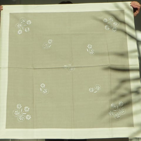 Taitavan kutojan kangaspuilla tekemä pellavainen pöytäliina. Siistiä työtä,ei ole koskaan käytetty.