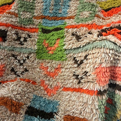 Siisti ja hajuton ryijy. Taustalla 30 mm Ewona akustiikkamateriaali, jonka saa halutessaan helposti pois.