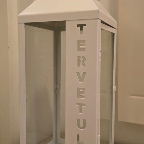 Kaunis lyhty. Muutamia kohtia mistä maalia lähtenyt, mielestäni sopii hyvin lyhdyn tyyliin.